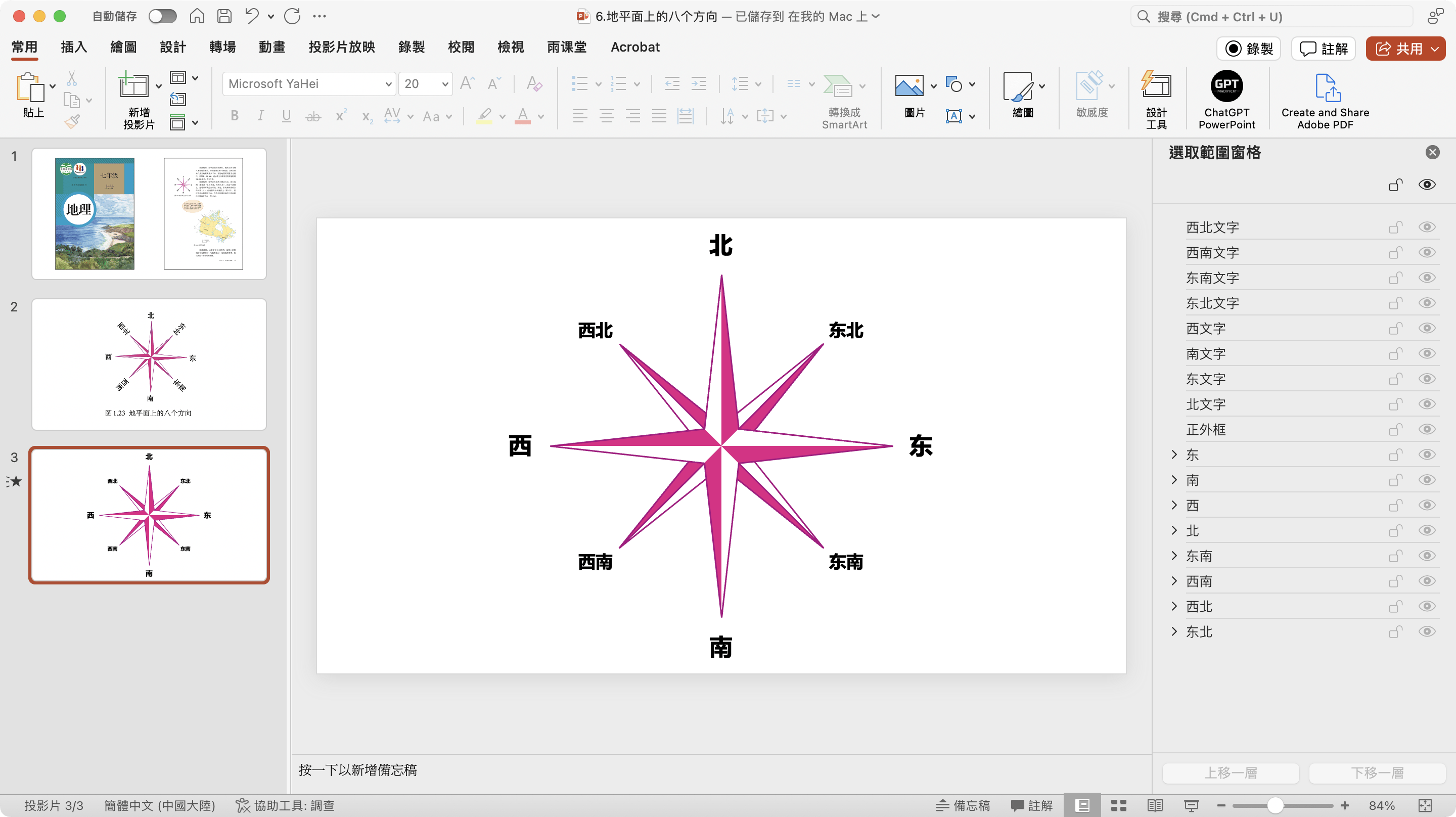 老师可以对8个方向的指示标和文字